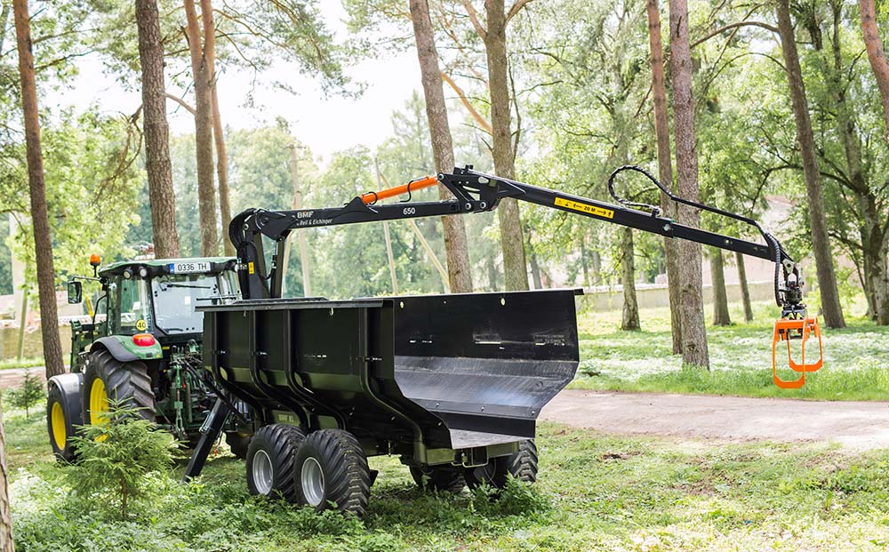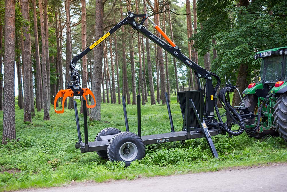A 2500 kg saját tömegű robusztus szerkezet hosszú élettartamot és megbízható működést garantál intenzív erdészeti használat mellett is. A daru különböző BMF erdészeti kiközelítő pótkocsikra szerelhető, és többféle kiegészítővel – például markolókkal, rotátorokkal, világítással vagy vezérlőszelepekkel – bővíthető.