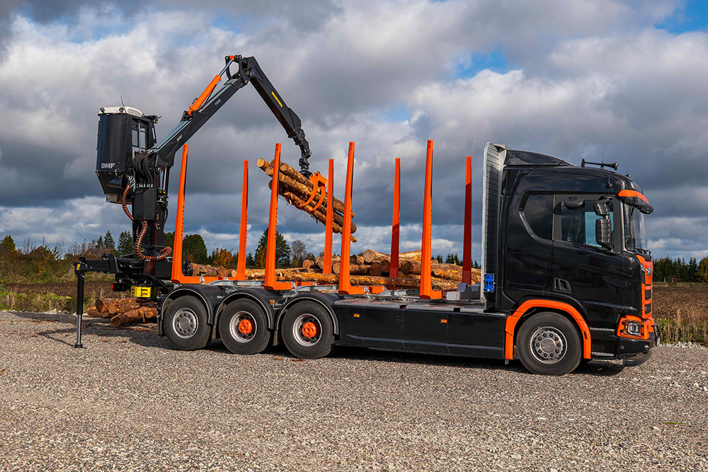 A daru Indexator rotátorral és BMF C50 markolóval szerelhető, amelyek stabil és biztonságos rönkmozgatást tesznek lehetővé. A rendszer kifejezetten professzionális faanyag-rakodási feladatokra lett optimalizálva, ezért ideális választás erdészeti szállítmányozással foglalkozó vállalkozások számára.